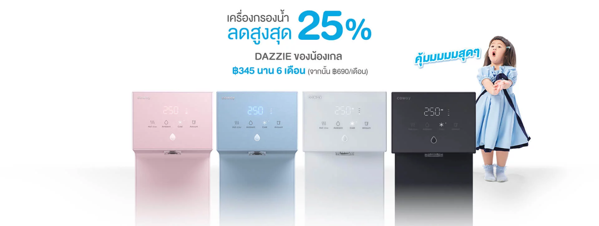 เครื่องกรองน้ำ coway เครื่องกรองน้ำ ประสิทธิภาพสูงด้วยระบบการกรอง RO (Reverse Osmosis) มีมาตรฐานการรับรองระดับโลก ได้น้ำสะอาด ด้วยกระบวนการกำจัดโลหะหนักและสารแขวนลอย มีระบบป้องกันการเกิดสาหร่ายและการก่อตัวของแบคทีเรียในน้ำ ให้คุณมั่นใจได้ว่าคุณจะได้ดื่มน้ำสะอาดปลอดภัย จากเครื่องกรองประสิทธิภาพสูงที่ผ่านการรับรองจากองค์กรระดับโลก เครื่องกรองน้ำ coway มาพร้อมกับ Function การใช้งานที่ตอบโจทย์ทุก Life Style บ้าน ออฟฟิศ คอนโด โรงงาน สำนักงาน เราชวนคุณมา Coway Change Your Life พร้อมมั้ย “เปลี่ยน…เพื่อชีวิตที่ดีกว่า”