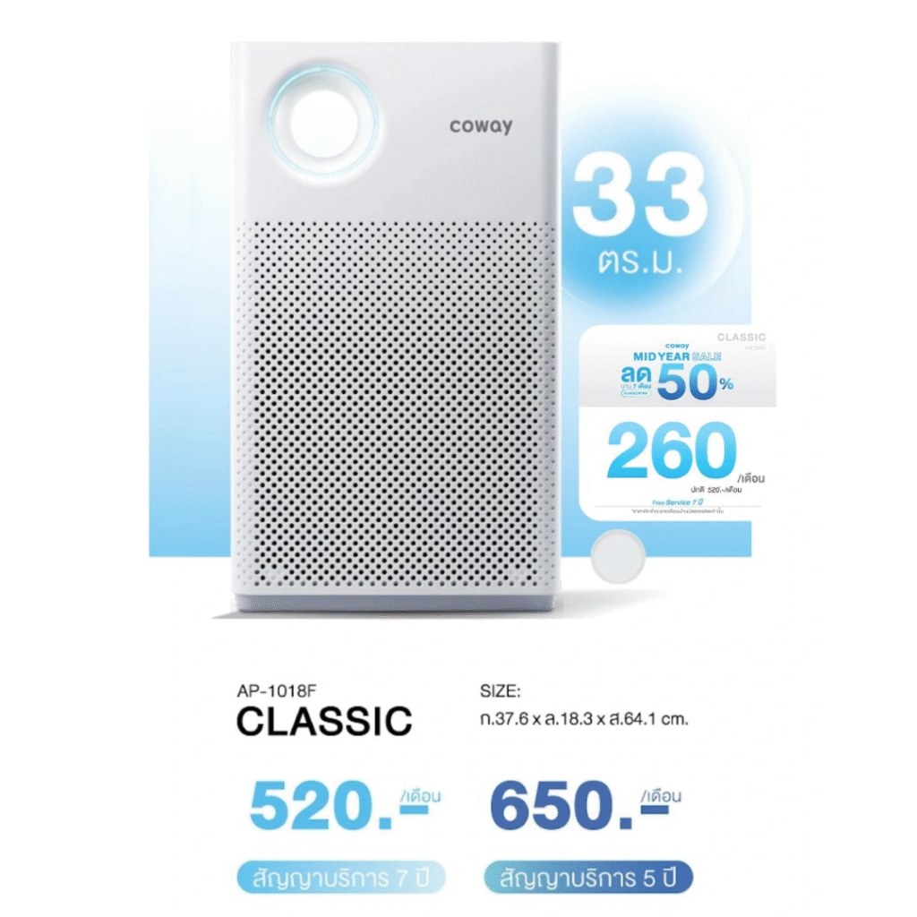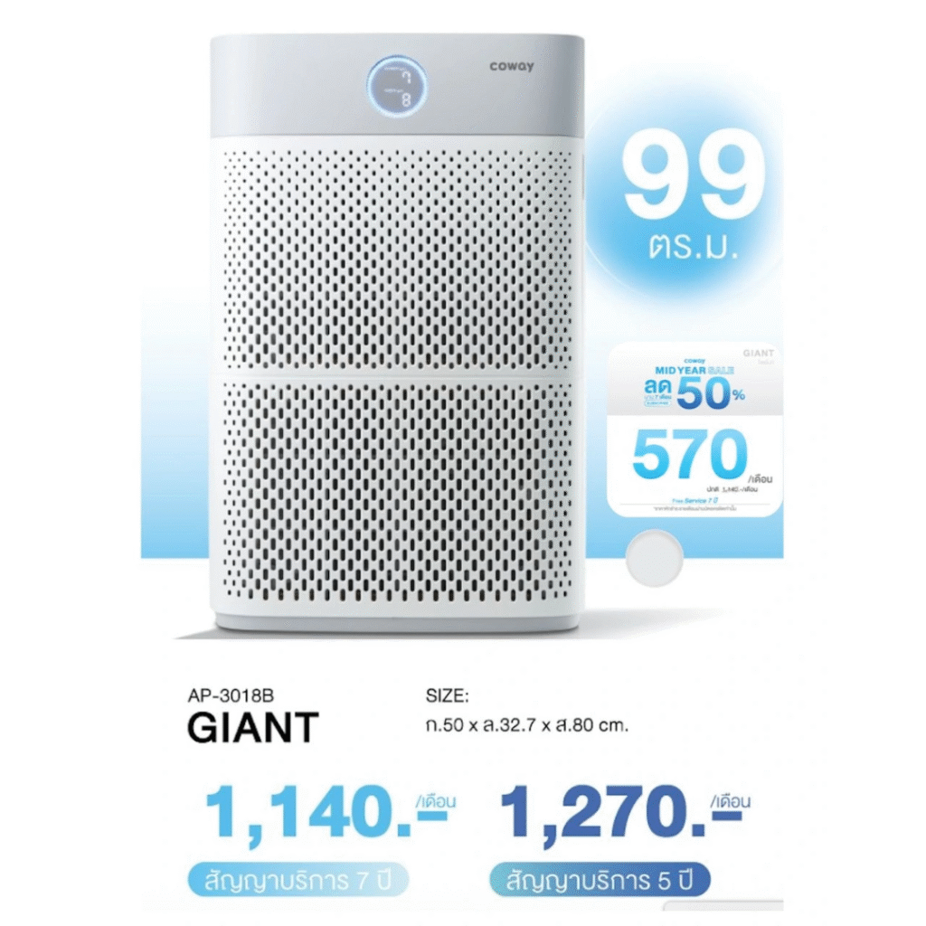 ผลิตภัณฑ์เครื่องฟอกอากาศศักยภาพสูง ขจัดมลพิษ กลิ่นไม่พึงประสงค์และก๊าซอันตรายได้ถึง 99.9% ด้วยความละเอียดการกรองที่สูง จึงมั่นใจได้เลยว่าสามารถจัดการกับเชื้อไวรัสและเชื้อราได้เต็มประสิทธิภาพ ดักจับฝุ่นละออง ทั้ง PM10 และ PM2.5 ก็หายเกลี้ยง ในเมื่อวันนี้คุณไม่สามารถควบคุมมลพิษที่อยู่นอกบ้านได้ แต่คุณสามารถคืนพื้นที่ปลอดภัยใหับ้านคุณได้ เพื่อให้ทุกลมหายใจในบ้าน ได้สูดอากาศที่บริสุทธุิ์อยู่ตลอดเวลา เราชวนคุณมา Coway Change Your Life พร้อมมั้ย “เปลี่ยน…เพื่อชีวิตที่ดีกว่า”